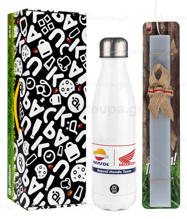 Honda Repsol Team, Easter candle, metallic white thermos bottle (500ml) & aromatic flat candle (30cm) (GRAY)