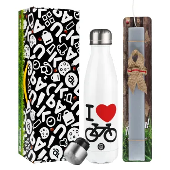 I love Bike, Easter candle, metallic white thermos bottle (500ml) & aromatic flat candle (30cm) (GRAY)