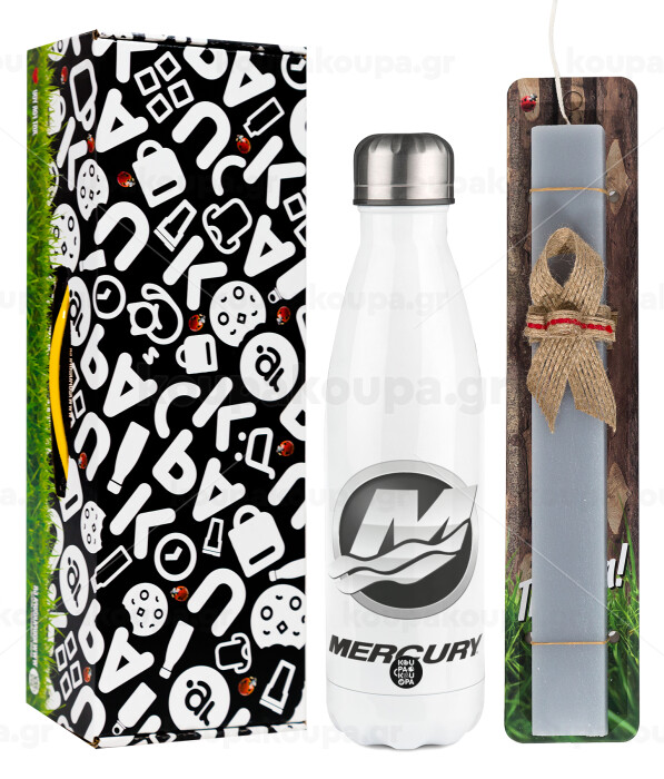 Mercury, Easter candle, metallic white thermos bottle (500ml) & aromatic flat candle (30cm) (GRAY)
