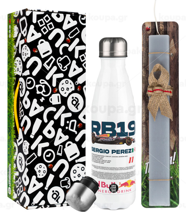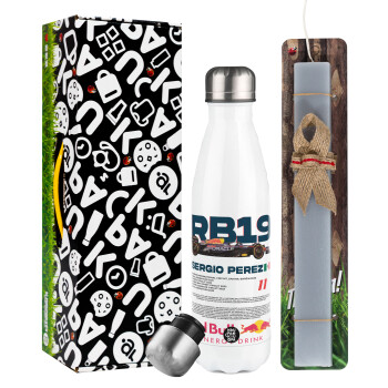 Redbull Sergio Perezi, Easter candle, metallic white thermos bottle (500ml) & aromatic flat candle (30cm) (GRAY)