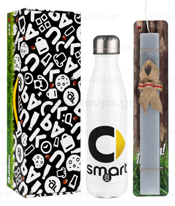 smart, Easter candle, metallic white thermos bottle (500ml) & aromatic flat candle (30cm) (GRAY)