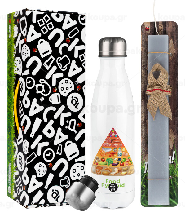 Food pyramid chart, Easter candle, metallic white thermos bottle (500ml) & aromatic flat candle (30cm) (GRAY)