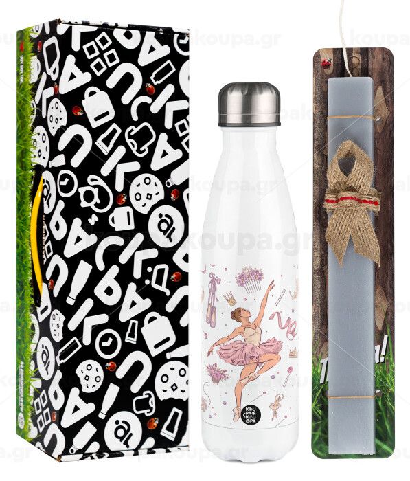 Ballet Dancer, Easter candle, metallic white thermos bottle (500ml) & aromatic flat candle (30cm) (GRAY)