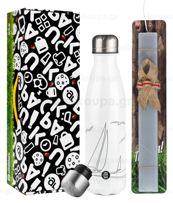Sailing, Easter candle, metallic white thermos bottle (500ml) & aromatic flat candle (30cm) (GRAY)