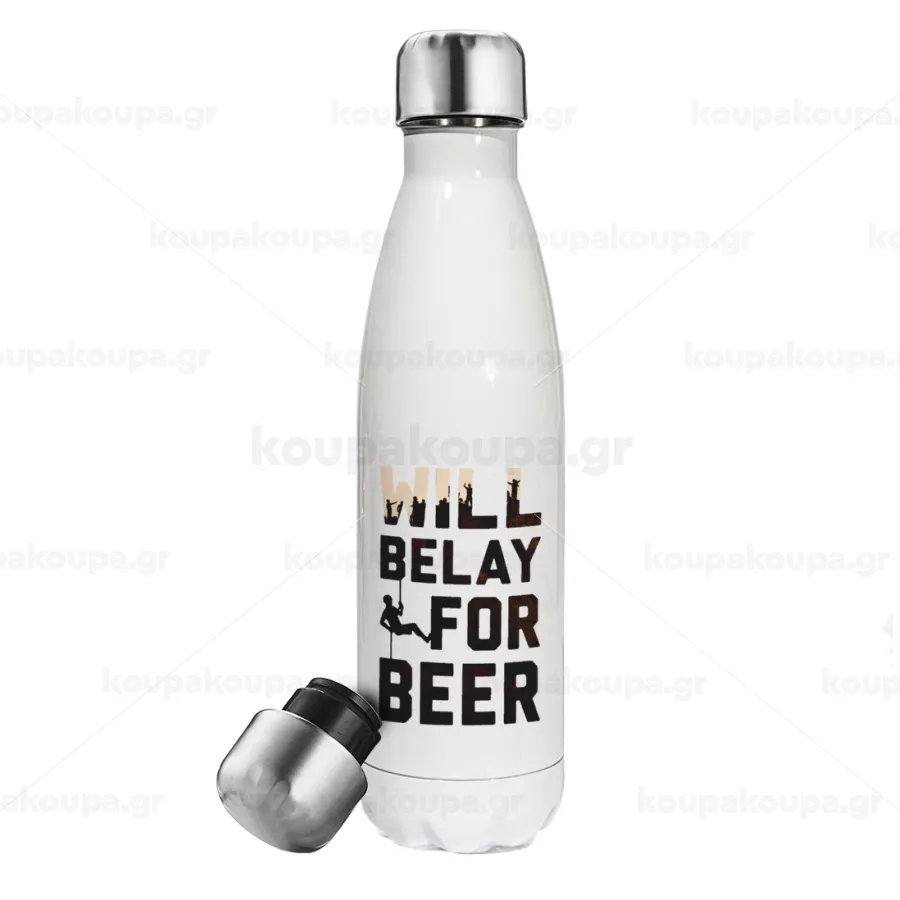 Will Belay For Beer, Easter candle, metallic white thermos bottle (500ml) & aromatic flat candle (30cm) (GRAY)