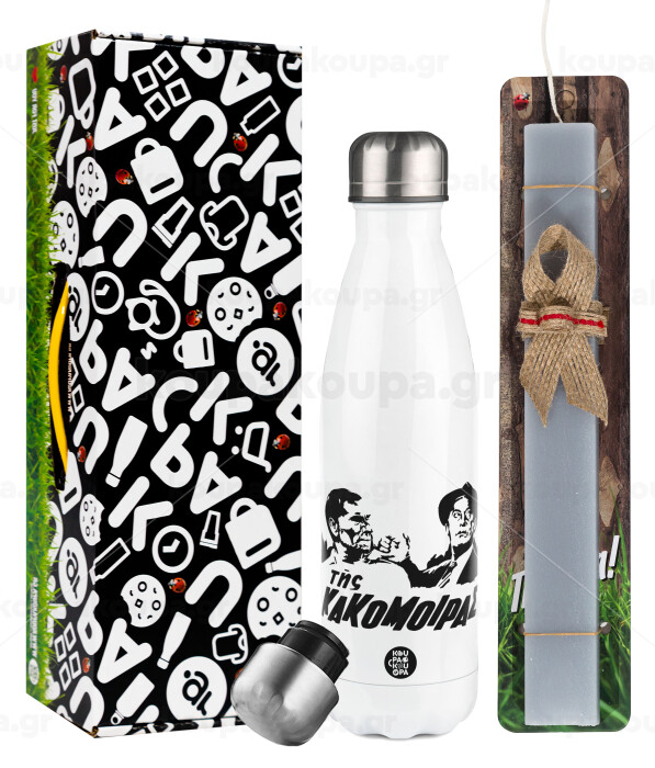 Tis kakomoiras, Easter candle, metallic white thermos bottle (500ml) & aromatic flat candle (30cm) (GRAY)