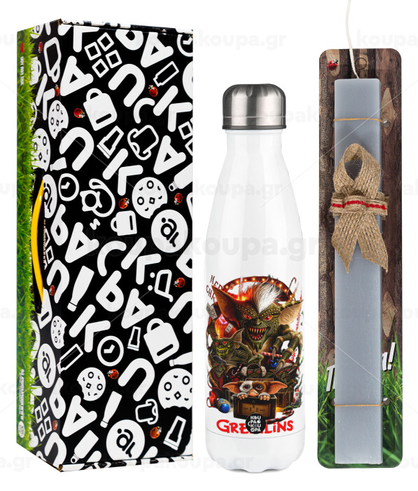 Gremlins, Easter candle, metallic white thermos bottle (500ml) & aromatic flat candle (30cm) (GRAY)