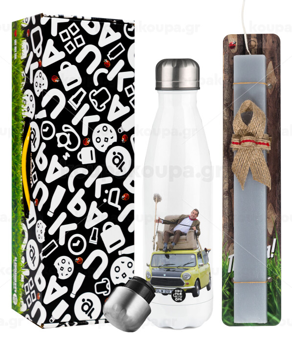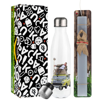 Mr. Bean mini 1000, Easter candle, metallic white thermos bottle (500ml) & aromatic flat candle (30cm) (GRAY)