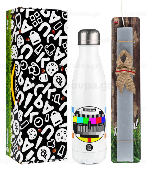 No signal, Easter candle, metallic white thermos bottle (500ml) & aromatic flat candle (30cm) (GRAY)