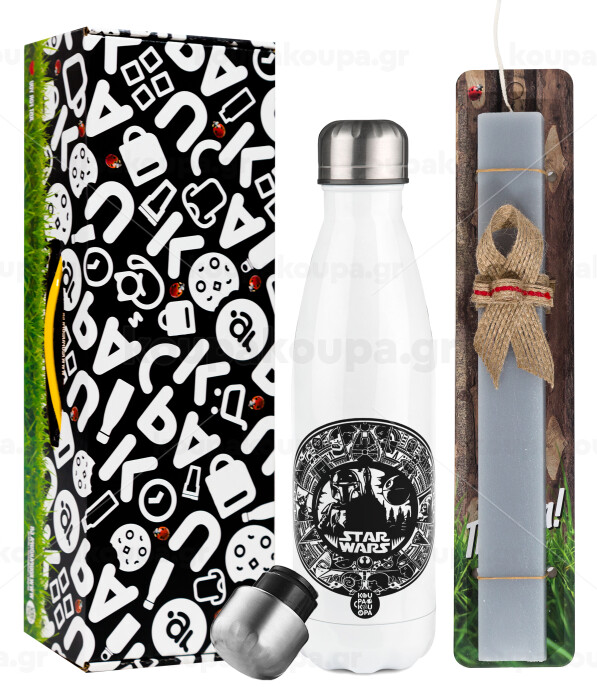 Star Wars Disk, Easter candle, metallic white thermos bottle (500ml) & aromatic flat candle (30cm) (GRAY)