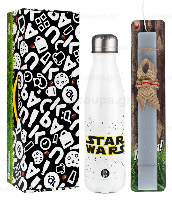 Star Wars, Easter candle, metallic white thermos bottle (500ml) & aromatic flat candle (30cm) (GRAY)