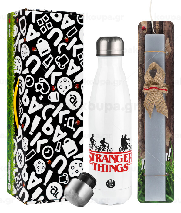 Stranger Things red, Easter candle, metallic white thermos bottle (500ml) & aromatic flat candle (30cm) (GRAY)