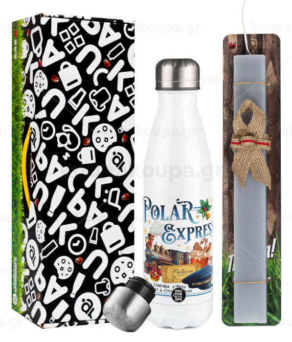 The Polar Express, Easter candle, metallic white thermos bottle (500ml) & aromatic flat candle (30cm) (GRAY)