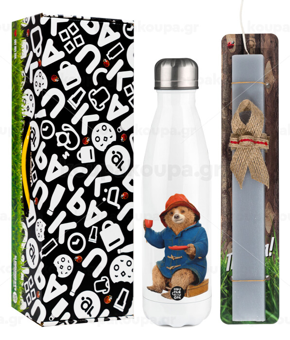 Αρκουδάκι Πάντινγκτον, Easter candle, metallic white thermos bottle (500ml) & aromatic flat candle (30cm) (GRAY)