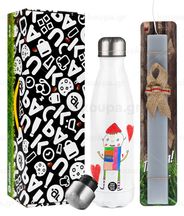 Ο Αλέξανδρος ζωγραφίζει την Αγάπη, Easter candle, metallic white thermos bottle (500ml) & aromatic flat candle (30cm) (GRAY)