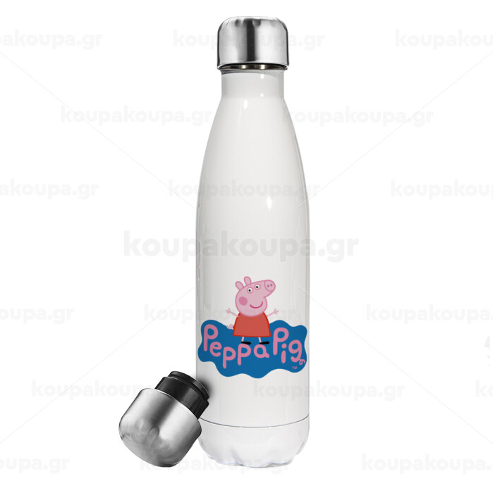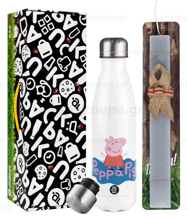 Πέππα το γουρουνάκι μπλε με όνομα, Easter candle, metallic white thermos bottle (500ml) & aromatic flat candle (30cm) (GRAY)