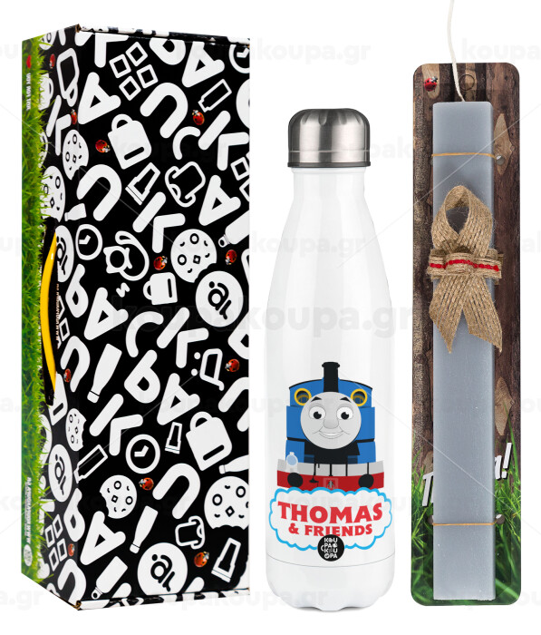 Τόμας το τρενάκι, Easter candle, metallic white thermos bottle (500ml) & aromatic flat candle (30cm) (GRAY)