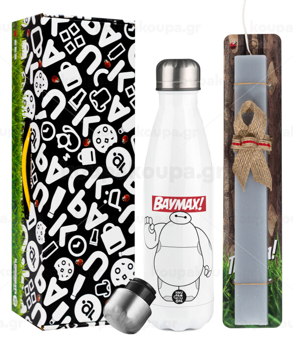 Baymax hi, Easter candle, metallic white thermos bottle (500ml) & aromatic flat candle (30cm) (GRAY)