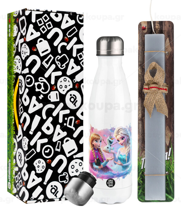 Elsa & Anna Princess, Easter candle, metallic white thermos bottle (500ml) & aromatic flat candle (30cm) (GRAY)