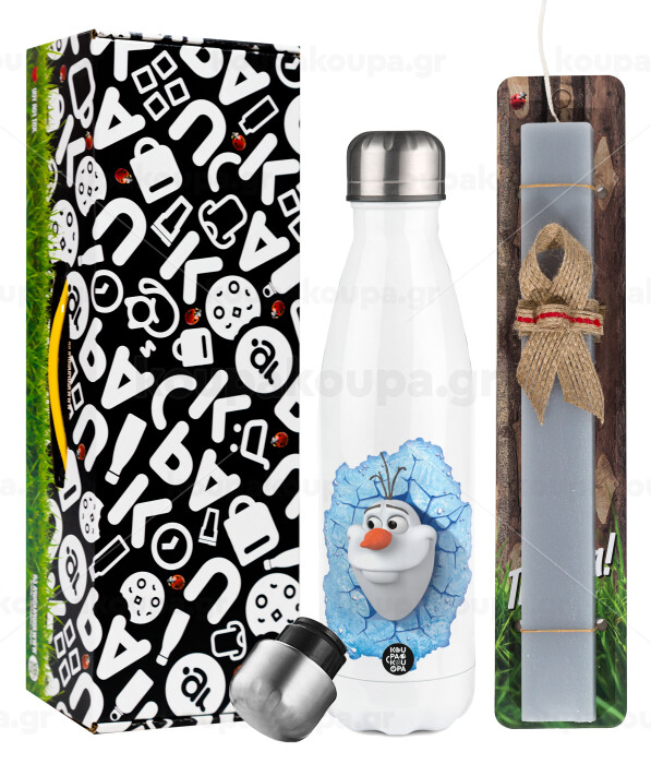 Frozen Olaf, Easter candle, metallic white thermos bottle (500ml) & aromatic flat candle (30cm) (GRAY)