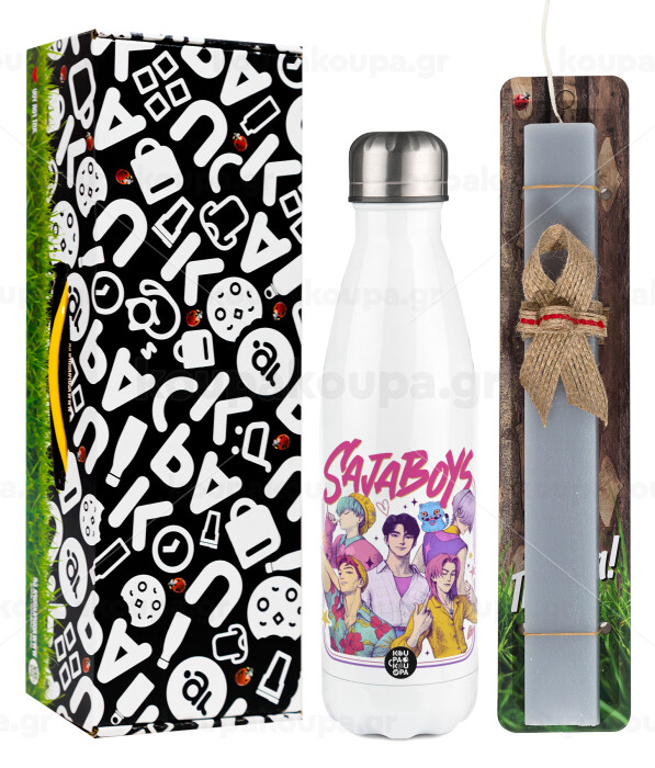 Huntrix Saja Boys, Easter candle, metallic white thermos bottle (500ml) & aromatic flat candle (30cm) (GRAY)
