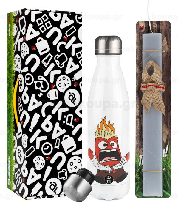 Inside Out Angry, Easter candle, metallic white thermos bottle (500ml) & aromatic flat candle (30cm) (GRAY)