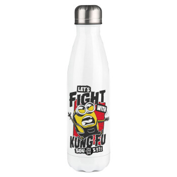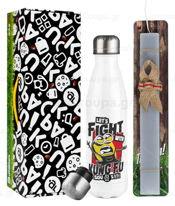 Minions Let's fight with kung fu sounds, Easter candle, metallic white thermos bottle (500ml) & aromatic flat candle (30cm) (GRAY)