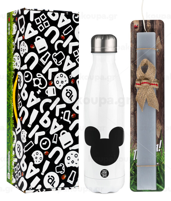mouse man, Easter candle, metallic white thermos bottle (500ml) & aromatic flat candle (30cm) (GRAY)