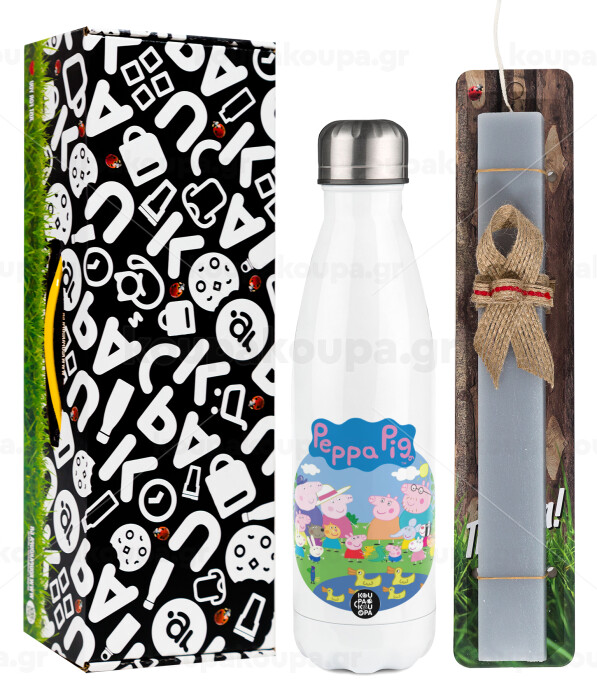 Peppa pig Family, Easter candle, metallic white thermos bottle (500ml) & aromatic flat candle (30cm) (GRAY)