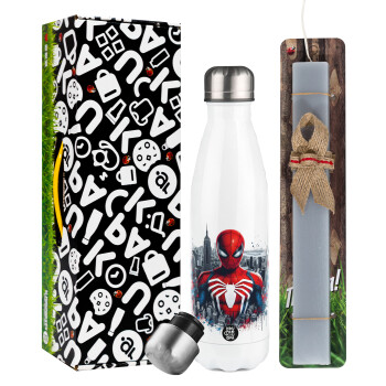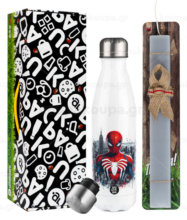 Spiderman City, Easter candle, metallic white thermos bottle (500ml) & aromatic flat candle (30cm) (GRAY)