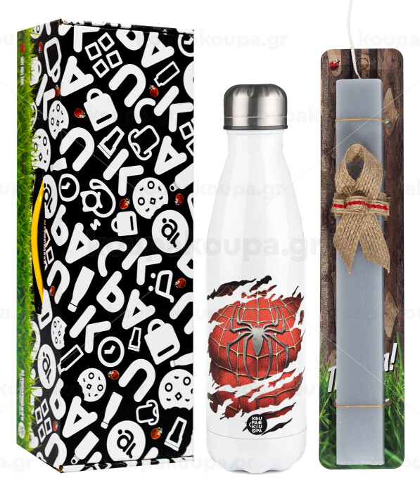 Spiderman cracked, Easter candle, metallic white thermos bottle (500ml) & aromatic flat candle (30cm) (GRAY)