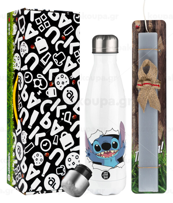 Stitch hello!!!, Easter candle, metallic white thermos bottle (500ml) & aromatic flat candle (30cm) (GRAY)