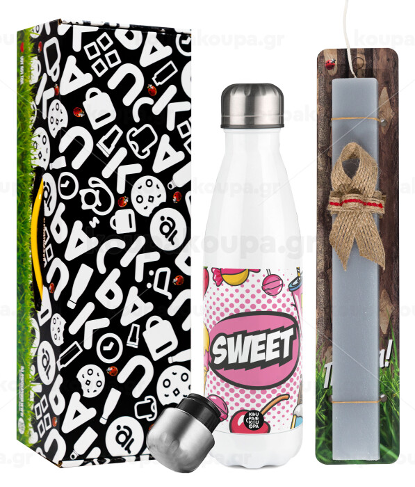 SWEET, Easter candle, metallic white thermos bottle (500ml) & aromatic flat candle (30cm) (GRAY)