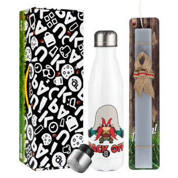 Yosemite Sam Back OFF, Easter candle, metallic white thermos bottle (500ml) & aromatic flat candle (30cm) (GRAY)