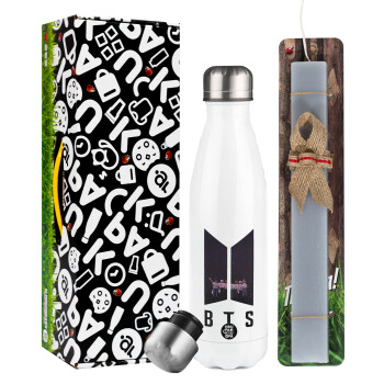 BTS, Easter candle, metallic white thermos bottle (500ml) & aromatic flat candle (30cm) (GRAY)