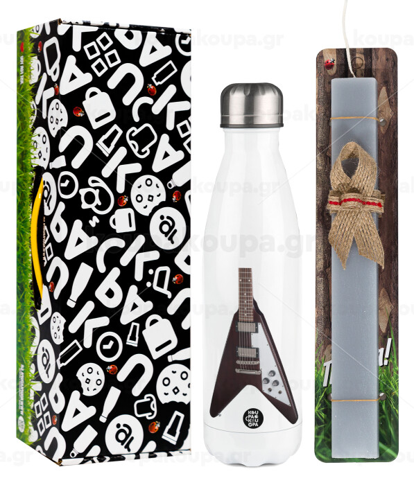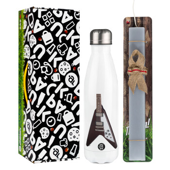 Guitar flying V, Easter candle, metallic white thermos bottle (500ml) & aromatic flat candle (30cm) (GRAY)