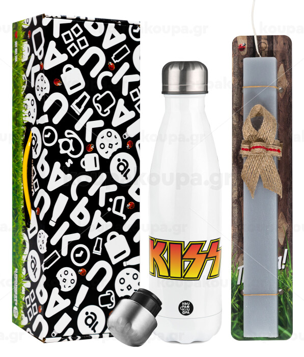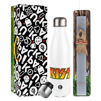 KISS, Easter candle, metallic white thermos bottle (500ml) & aromatic flat candle (30cm) (GRAY)