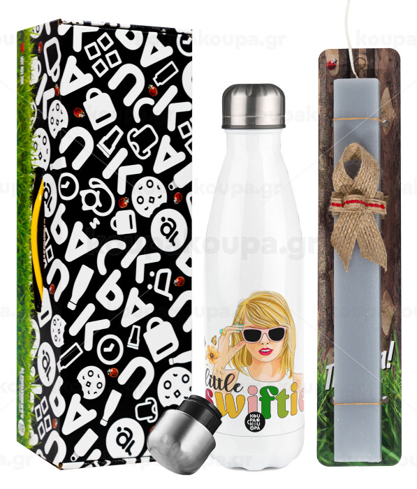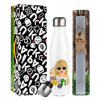 Little Swiftie, Easter candle, metallic white thermos bottle (500ml) & aromatic flat candle (30cm) (GRAY)