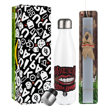 Maneskin lips, Easter candle, metallic white thermos bottle (500ml) & aromatic flat candle (30cm) (GRAY)