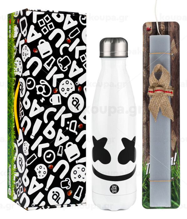 Marshmello, Easter candle, metallic white thermos bottle (500ml) & aromatic flat candle (30cm) (GRAY)