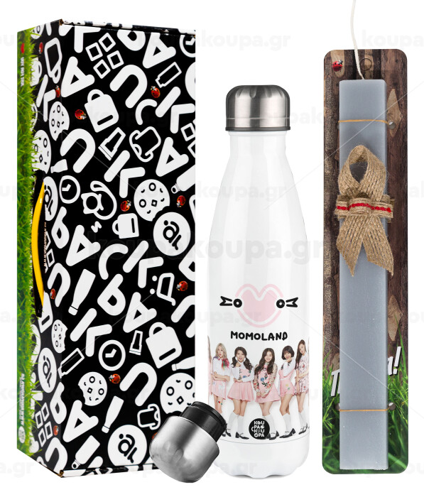 Momoland pink, Easter candle, metallic white thermos bottle (500ml) & aromatic flat candle (30cm) (GRAY)
