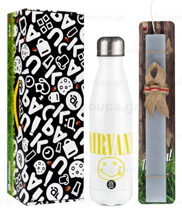 Nirvana, Easter candle, metallic white thermos bottle (500ml) & aromatic flat candle (30cm) (GRAY)