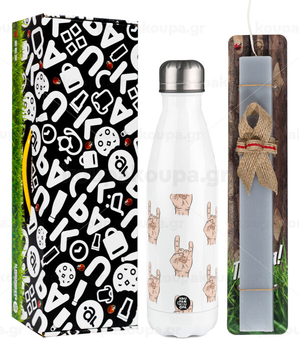 Rock hands, Easter candle, metallic white thermos bottle (500ml) & aromatic flat candle (30cm) (GRAY)