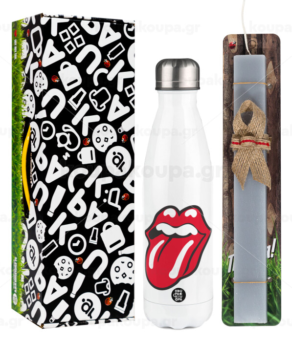 Rolling Stones Kiss, Easter candle, metallic white thermos bottle (500ml) & aromatic flat candle (30cm) (GRAY)