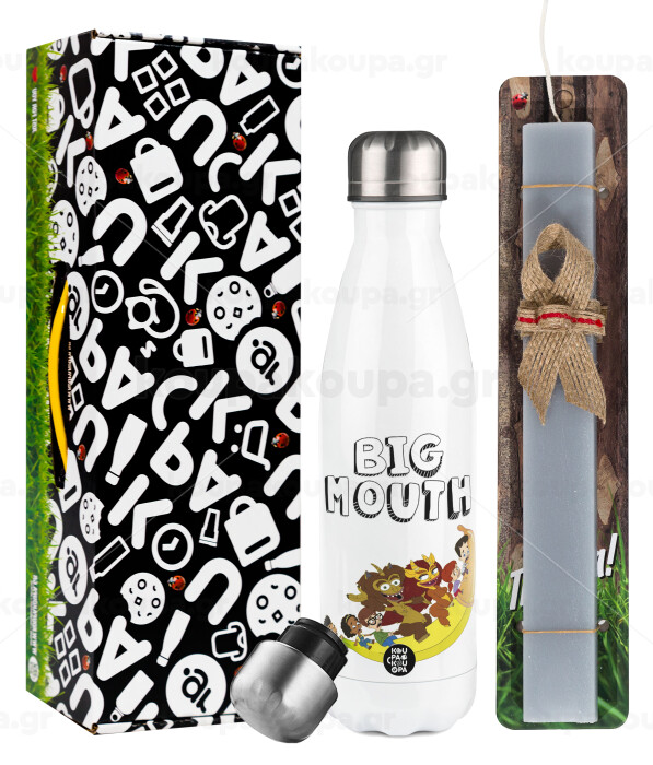 Big mouth, Easter candle, metallic white thermos bottle (500ml) & aromatic flat candle (30cm) (GRAY)