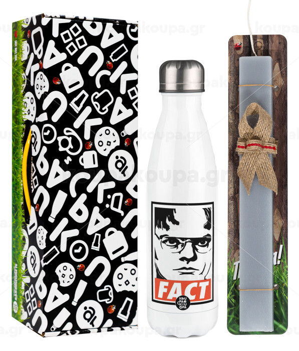 Dunder Mifflin FACT, Easter candle, metallic white thermos bottle (500ml) & aromatic flat candle (30cm) (GRAY)