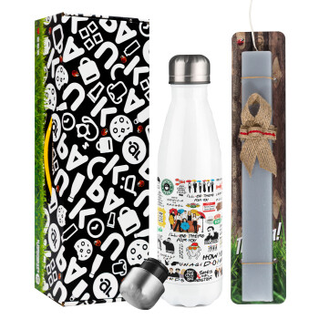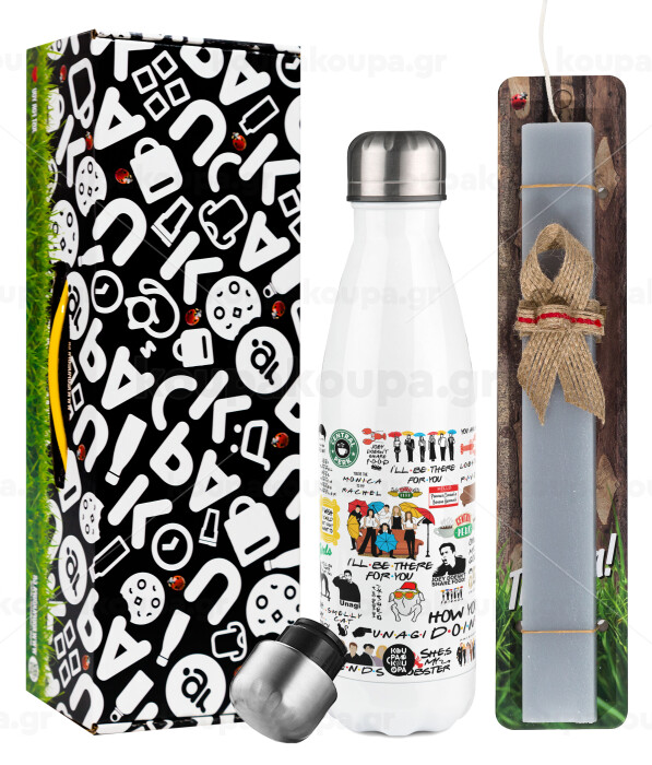 Friends, Easter candle, metallic white thermos bottle (500ml) & aromatic flat candle (30cm) (GRAY)