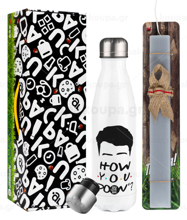 Friends how you doin?, Easter candle, metallic white thermos bottle (500ml) & aromatic flat candle (30cm) (GRAY)
