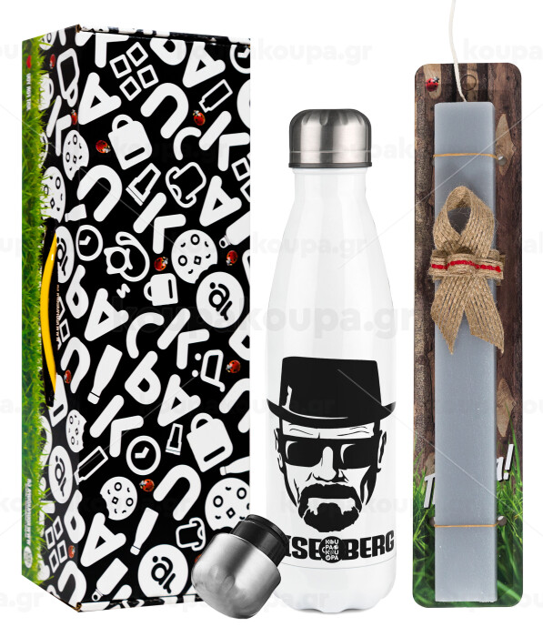 Heisenberg breaking bad, Easter candle, metallic white thermos bottle (500ml) & aromatic flat candle (30cm) (GRAY)