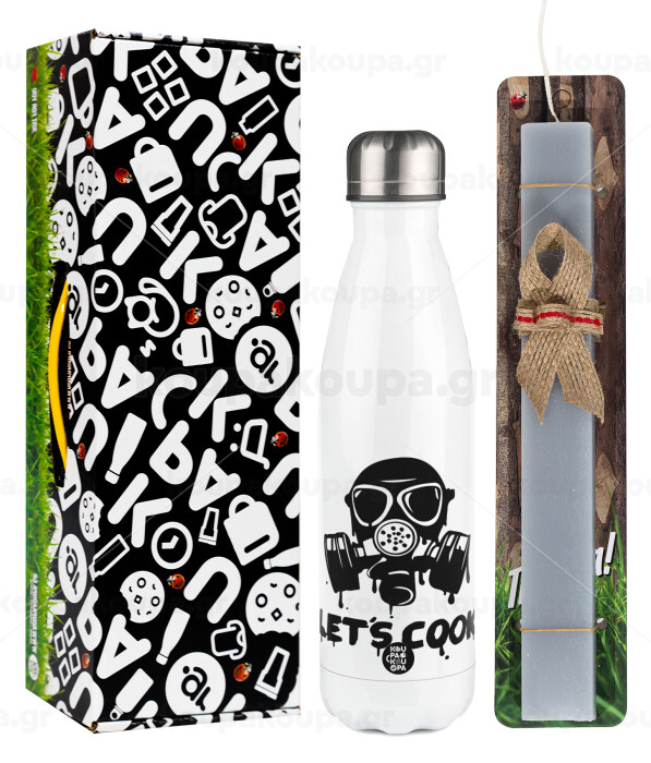 Let's cook mask, Easter candle, metallic white thermos bottle (500ml) & aromatic flat candle (30cm) (GRAY)